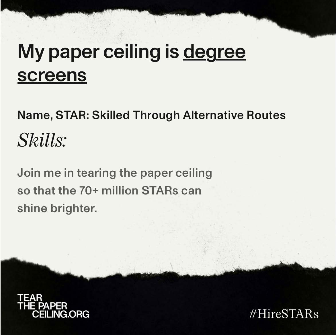 - For posts not on social media, stories must identify subjects as STARs and mention Tear the Paper Ceiling to be eligible